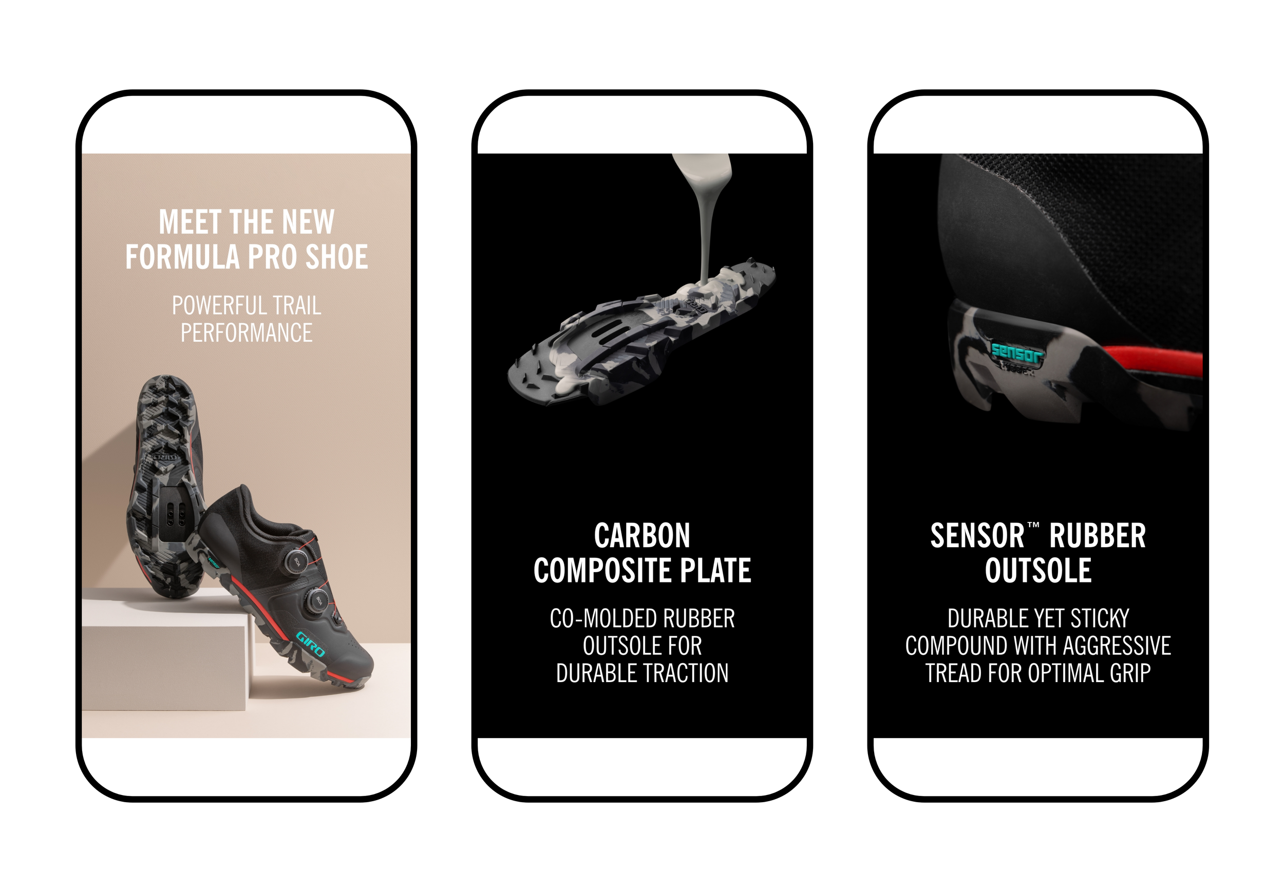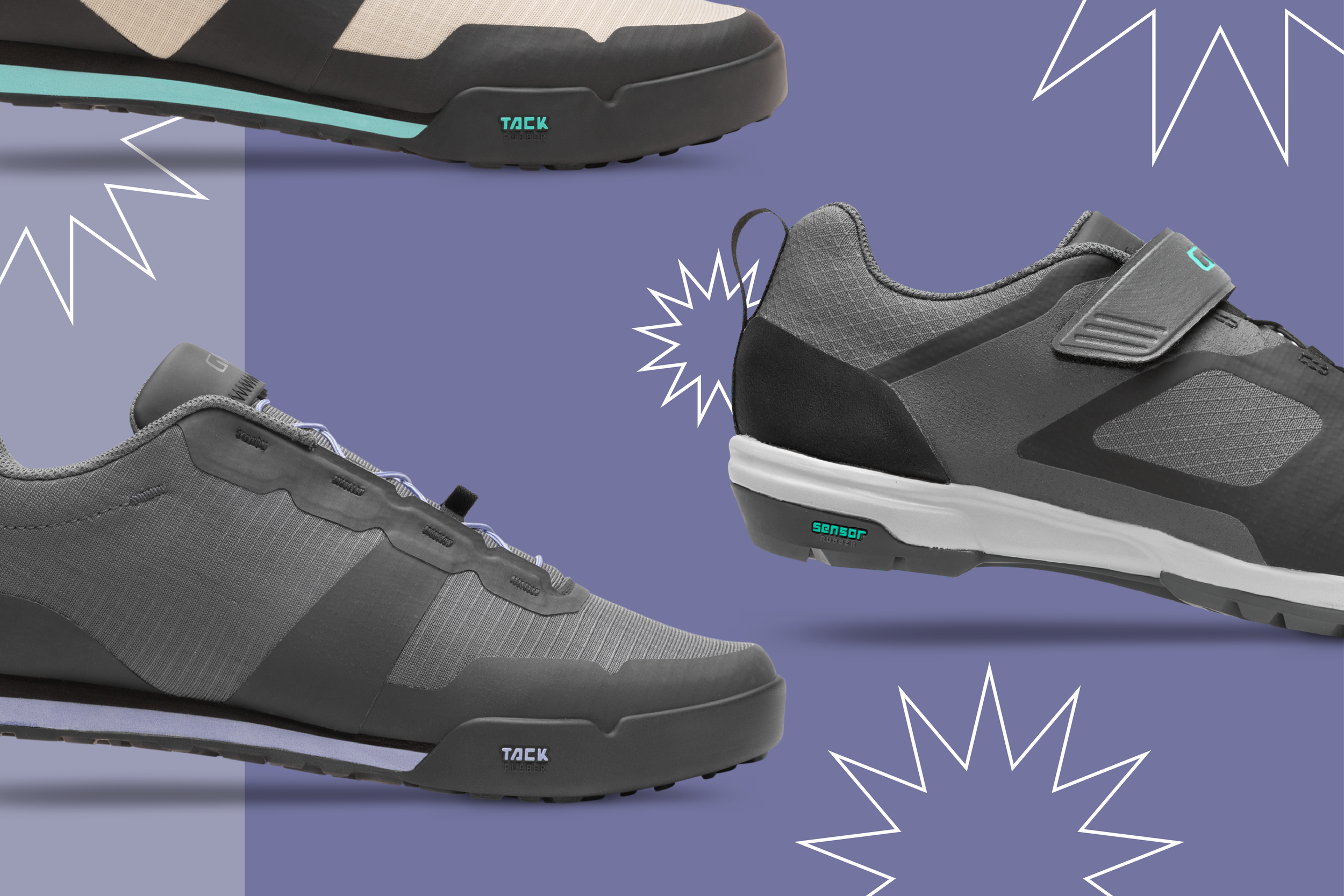 Tack and Sensor are specially formulated rubber compounds in Giro’s newest line of cycling shoes, each designed to support different riding styles. Tack delivers super-sticky grip for flat pedals and a more connected feel to the bike, while Sensor emphasizes durability and dependable traction for confident clipless riding.